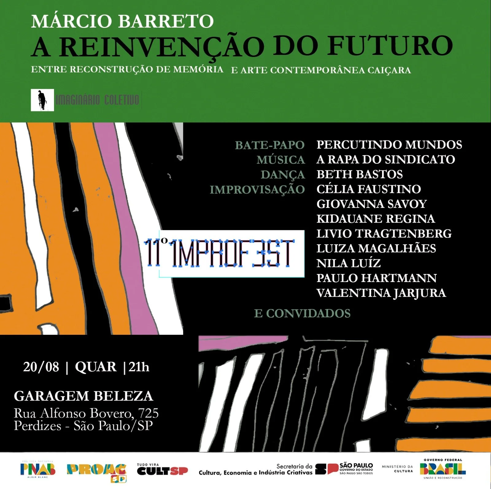 No dia 20/08, quarta-feira, às 21h, no Garagem Beleza, Perdizes, São Paulo, artistas de diferentes linguagens se reúnem em torno do lançamento do livro "A reinvenção do futuro". Músicos como Livio Tragtenberg, Paulo Hatmann, Percutindo Mundos e a Rapa do Sindicato, juntos no 11° Improfest (Festival Internacional de Arte Sonora e Improvisação), se unem para improvisar com as artistas da dança Beth Bastos, Célia Faustino, Gabriela Guimarães, Giovanna Savoy, Kidauane Regina, Luiz Nila, Luiza Magalhães e Valentina Jarjura. Antes da apresentação o evento contará com bate-papo sobre arte contemporânea caiçara.
